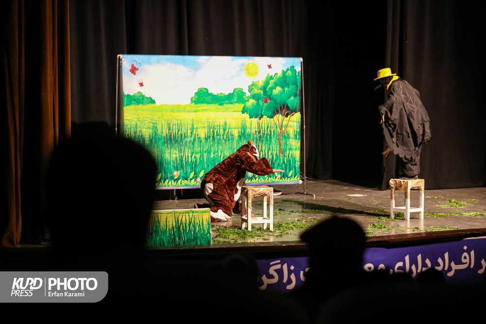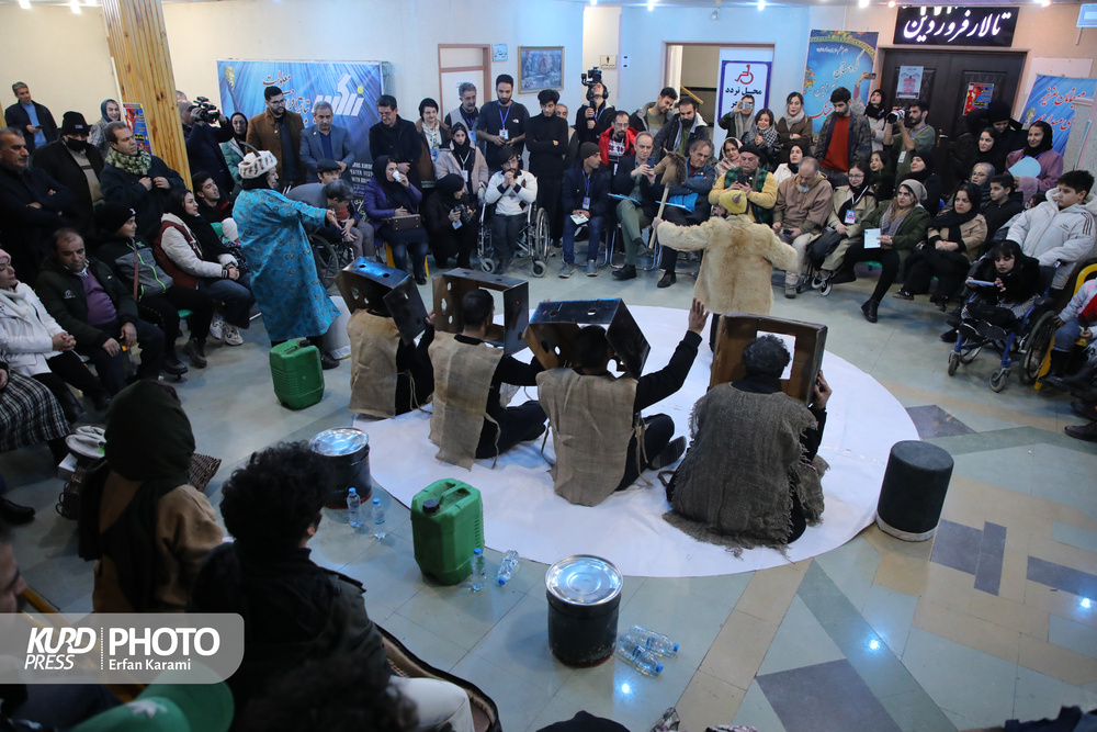 در دومین روز از نهمین جشنواره منطقه ای تئاتر معلولان زاگرس در سنندج 6 اثر از گروه های شرکت کننده در دو بخش خیابانی و صحنه ای اجرا شد .